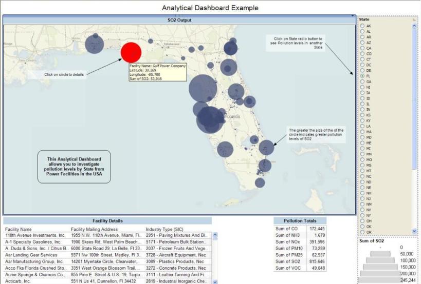 Notice how the tabular report in the third tab it is difficult to see - information visualization or visualisation makes a big difference to seeing what is going on. Click Here to find out about Tableau Software that made the dashboard below Finally see below how you can view a comprehensive FREE 30 minute video on constructing Dashboards Example DashboardBusiness Dashboards can be classified into three types: Strategic – has minimal interaction. You can see the summary at a glance. Primarily for senior managers reviewing the big picture of the organisation e.g. budgets, actuals, and forecasts, often long terms of time (years, quarters, months). Drilling down into details is not required here. Example of a Strategic Dashboard Analytical – for analysis, comparing situations and exploring. This type of dashboard helps make decisions to follow say the current strategic plan. It should allow you to look for trends and outliers that present new opportunities or threats to the continued organisation success or the achievement of objectives. Comparisons, drilling down into details, and tracking changes in shorter terms of time (months, weeks, days). Example of Simple Analytical Dashboard Operational – are for monitoring tasks that might need action soon or right now at the minute, hour and daily level Operational dashboards are for monitoring tasks that might need action soon or right now; your interest is in intra-day periods (hours, minutes). This similar to Analytical but on far shorter timescale.